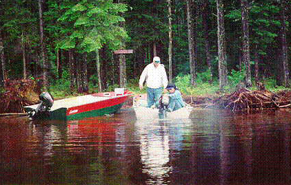 Aaron watching Bob start the outboard